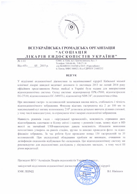 Нікішаєв В.І. Президент ВГО “Асоціація Лікарів ендоскопістів України”, д.мед.н., Завідуючий відділенням ендоскопічної діагностики та малоінвазивної хірургії КМК ЛШМД